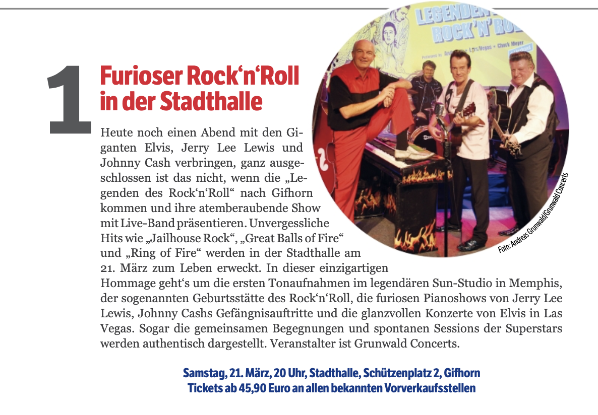 Er selbst verspricht leicht untertreibend "eine Menge guter Rock’n’Roll Songs in unserem Programm", was dann aber Andy Lee und seine Rockin’ Country Men am 8. August auf der Bühne im Biergarten am Junkernhof abliefern, ist nur schwer zu toppen.